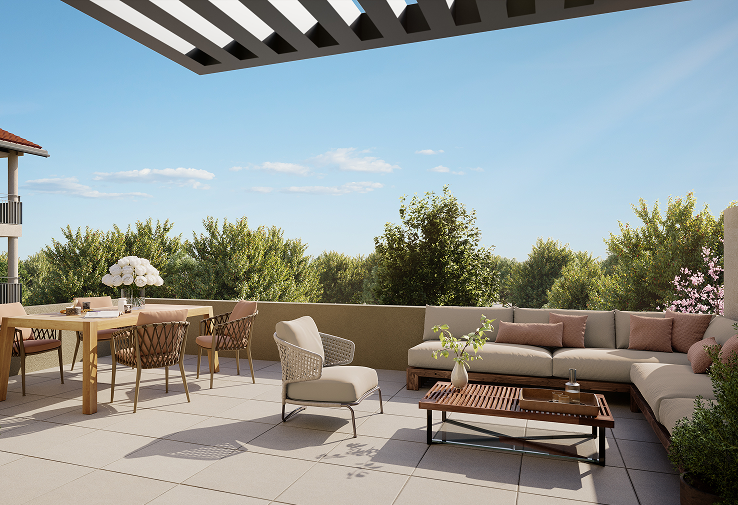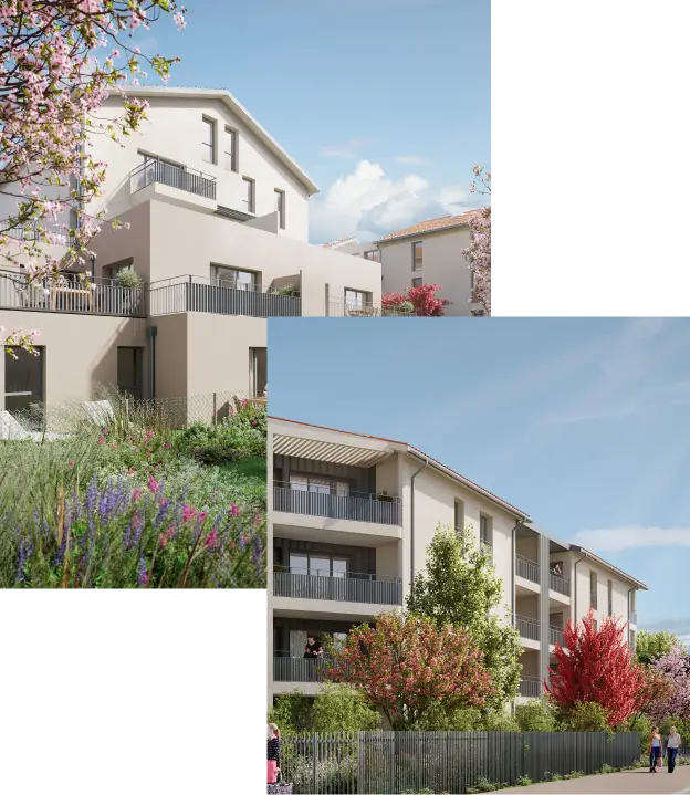 Tous les logements disposent d’un extérieur : balcon, terrasse ou jardin privatif, pour prolonger les espaces de vie. L’architecture contemporaine, sobre et équilibrée, s’intègre harmonieusement dans son environnement.